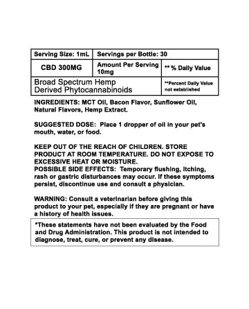 Broad Spectrum Hemp Extract, Natural Hemp Oil, Bacon Flavor.